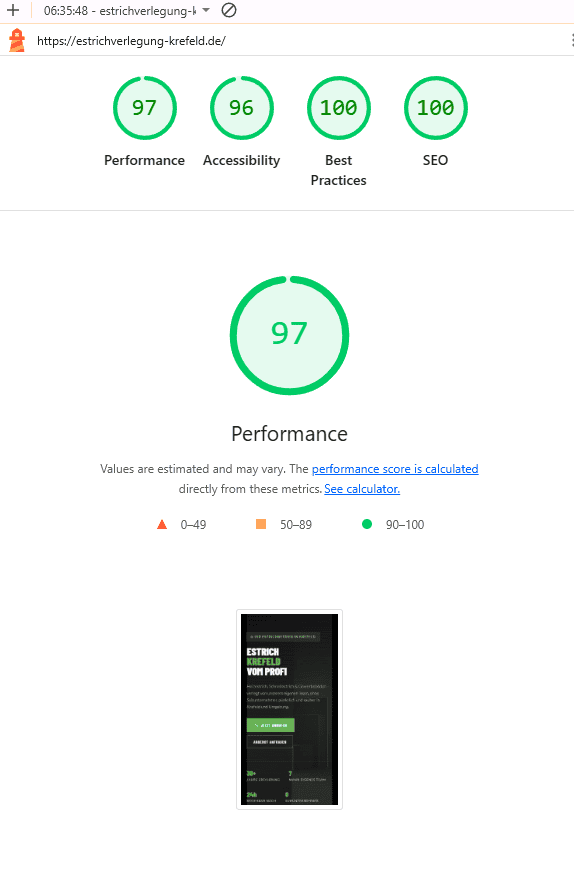 Siehe Screenshot vom offiziellen Google Lighthouse Test (Barrierefreiheit)